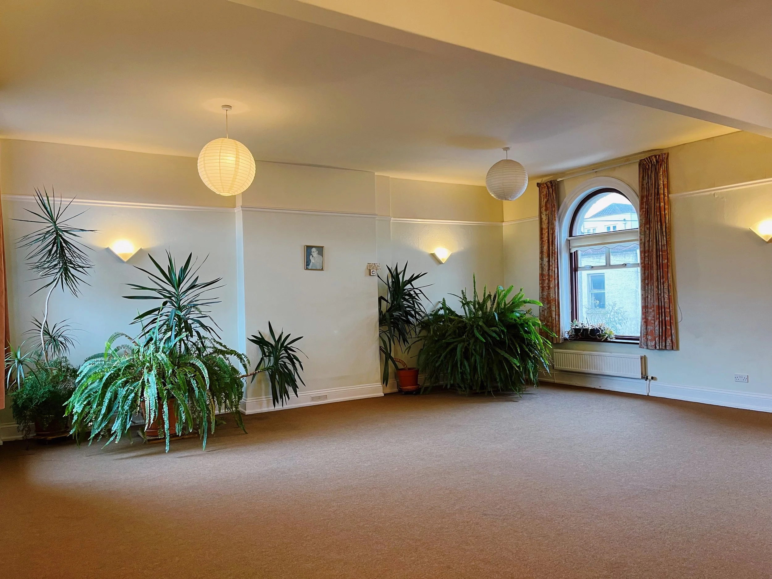 Our hall is a large, spacious, bright and airy room, with a large mirror, a carpeted floor to buffer sound and a fire exit.
